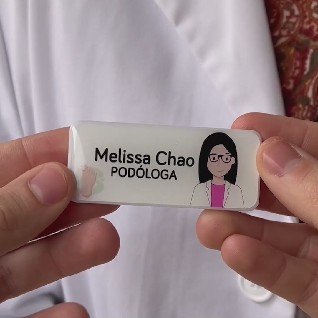 Imán potente para sujetar tu plaquita sin dañar la ropa. Ideal para batas o uniformes delicados.